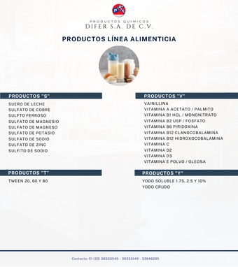 Productos Químicos Difer es una empresa dedicada a la comercialización y distribución de materias primas nacionales e importadas para la industria alimenticia, farmacéutica y cosmética.